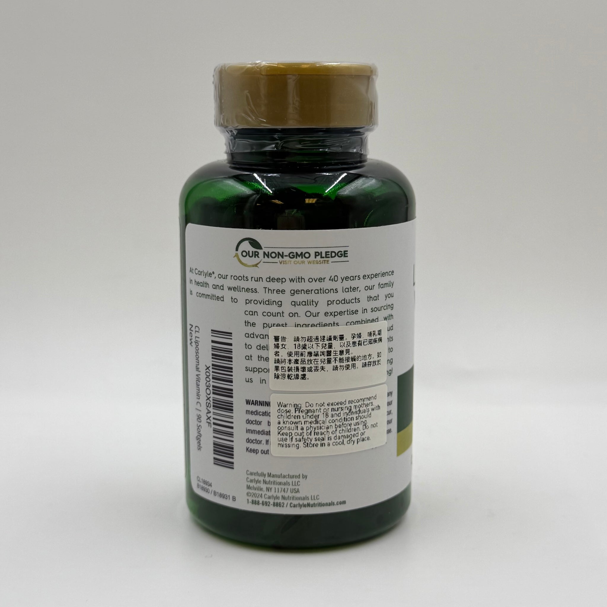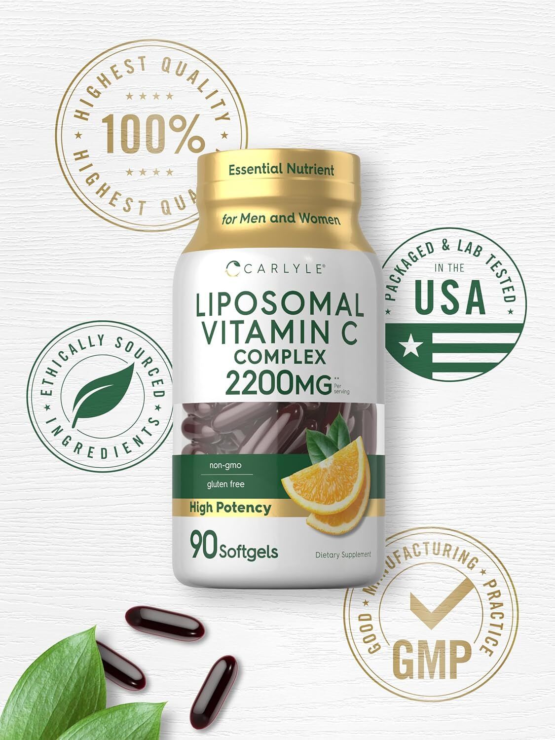 Carlyle 脂質體維他命C複合配方是一種高品質的必需營養素,適合男女使用。每份快速釋放軟膠囊含有2,200毫克維他命C及特殊的脂質體基質。我們的配方天然不含麩質、非基因改造,不含人工香料或防腐劑,為您在追求健康的路上提供優質保障。